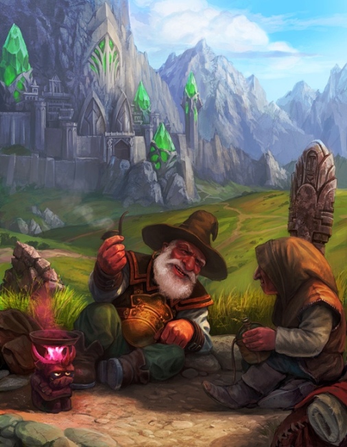 Die geduldigen Zwerg-Alchimisten haben in ihren Experimenten Großes erreicht: mit der Genauigkeit eines Juweliers haben sie die nötige Menge an Zutaten abgemesen und überprüften akribisch die richtige Zusammensetzung. So gelang es ihnen auf unglaubliche Weise, den Stein der Weisen zu erschaffen, den Gegenstand einer niemals endenen Suche von Gelehrten und Denkern aller Zeiten. Mit seiner Hilfe konnte das Zwergenvolk einfaches Blei in kostbare Goldbarren verwandeln.