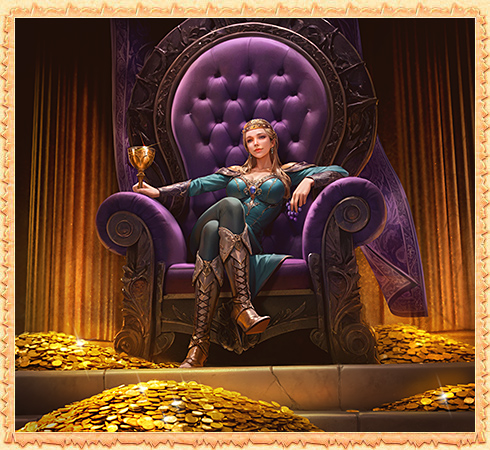 Mit ihrem Schwert zerschmettert sie ganze Golem-Trupps, reißt die Türen der königlichen Schatzkammer ein und stapelt die Schätze zu ihren Füßen. Es ist der perfekte Moment, um den goldenen Kelch auf das Glück zu erheben!