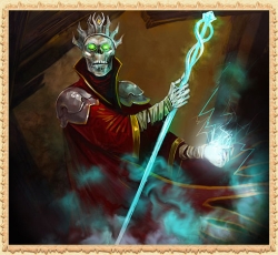Either it was the full moon or the enormous amount of blood shed in the Malleable Badlands of late, but what ever it was, the Undead are restless. No rest for the wicked and wicked they are: The Witch King Asphodron and his two generals Necrophol and Lethalion have risen and are scouring Faeo for lost souls, press ganging them into the army of the Undead. Necrophol was last seen in Khair and survivors told tales of Lethalion roaming Ogriy.