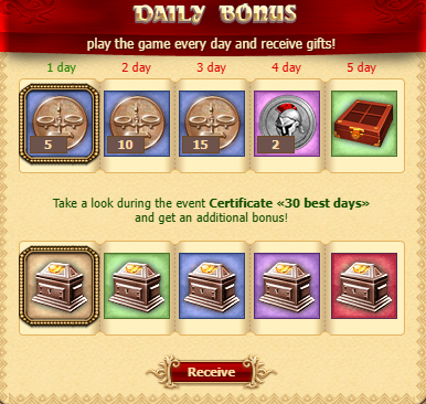 Warriors! The Premium Shop has been updated! Enjoy the new Certificate «30 best days»! After purchasing it you will receive more daily login bonuses!