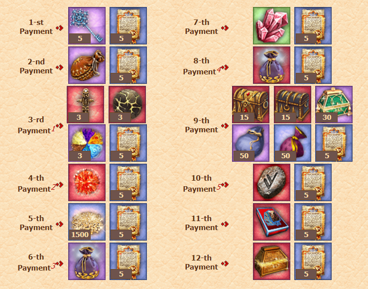 Diamonds, that shine under the rays of Mirrow, are rightfully considered to be the most valuable currency of the world of Faeo. Warriors with the handful of diamonds can open many doors, and tradesmen will be glad to offer rarest goods. Now you can receive valuable and important goods for the mere fact of purchasing diamonds, without actually spending them!