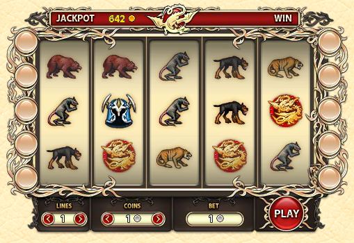 The pleasure-seeking warriors of Faeo love the one-armed bandit where they can try their luck and win lots of Gold. Now there are great news! So far you had to go on an often long journey to the crowded pubs, but now you can try to win the jackpot wherever you are, the one-armed bandit can be reached from every location! But who knows when Lady Luck will smile on them? She is very capricious – sometimes she showers the fortunate with her gifts, while at other times she can take the last copper coin from a poor wretch. To protect you from large losses the One-Armed Bandit has been configured to only accept large bets when you have sufficient money in your wallet to live well. In other words, the more gold you have clinking in your pocket, the more money you can bet, so as to win big! But the opposite is also true: If a warrior's wallet has been empty for a long time, the machine will only allow him to place a small bet. This means that his loss will be smaller if he does not win.  Now you don't have to go to the pubs, but you can try your luck wherever you currently are. You can reach the bandit by clicking the Bandit button that appears at the bottom left corner when the bandit is available.