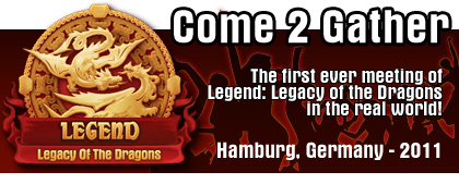 The time has finally come! Starting today you can buy tickets for the very first real life meeting of Legend: Legacy of the Dragons! The tickets sell for  9.00 a piece at the city square shops. Every player can only purchase one ticket. Only those with a ticket are entitled to a free meal and a free drink at the event location and a personal autograph from Yvil. Of course you can bring all your family members and friends, they just need to buy their own tickets.
