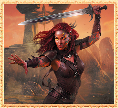 Её красота ослепительна, как языки пламени, вырывающиеся из пасти крылатого покровителя Хаира. Эта воительница поразила всех подвигами на Испытаниях драконов, оставив позади многих великих героев, и сам Стриагорн теперь удостоил её своего покровительства.