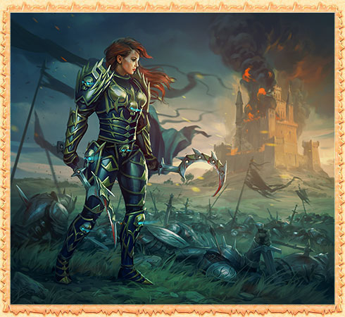 This beautiful warrioress wanders Ogriy looking for profitable orders, and her reputation precedes her. Any ferocious monster will fall to her blades, so order away! There is one important condition: the reward must be significant.
