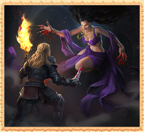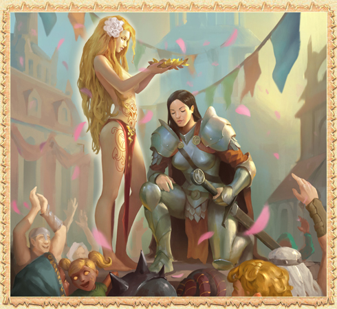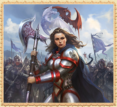 Прекрасная и отважная воительница превзошла многих прославленных бойцов во время Испытаний Великих драконов. Довольный Эрифариус благосклонно взирает на новую героиню Огрия, и, кажется, в клубах дыма из его пасти, что поднимаются к небу, можно увидеть неясные очертания её ещё более славного будущего.
