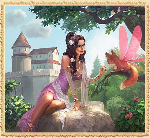 At the sight of such a gorgeous maiden even careful Eldricks are coming down from the branches of the trees. How many gallant warriors would like to get treats from her gentle palms.