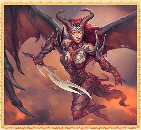 Что за огонь опалил её крылья и наградил багровым загаром? Пламя никогда не засыпающего вулкана или самой адской бездны? Эта воительница выглядит царицей демонов, которых ведёт их в бой, чтобы пролить побольше человеческой крови.
